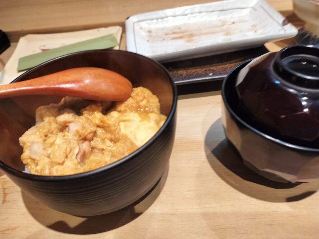 卵はとろとろの半熟で、スプーンを入れると黄身がご飯に絡みつく。鶏肉は焼き鳥とはまた違う部位を使っているようで、しっかりした歯ごたえとジューシーさがありました。